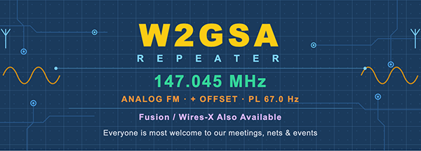 Tuesday night net at 8:30 PM – GSARA repeater. Informal and fun and you don’t have to be a member of GSARA: REPEATER FREQUENCY W2GSA 147.045 (+) PL 67